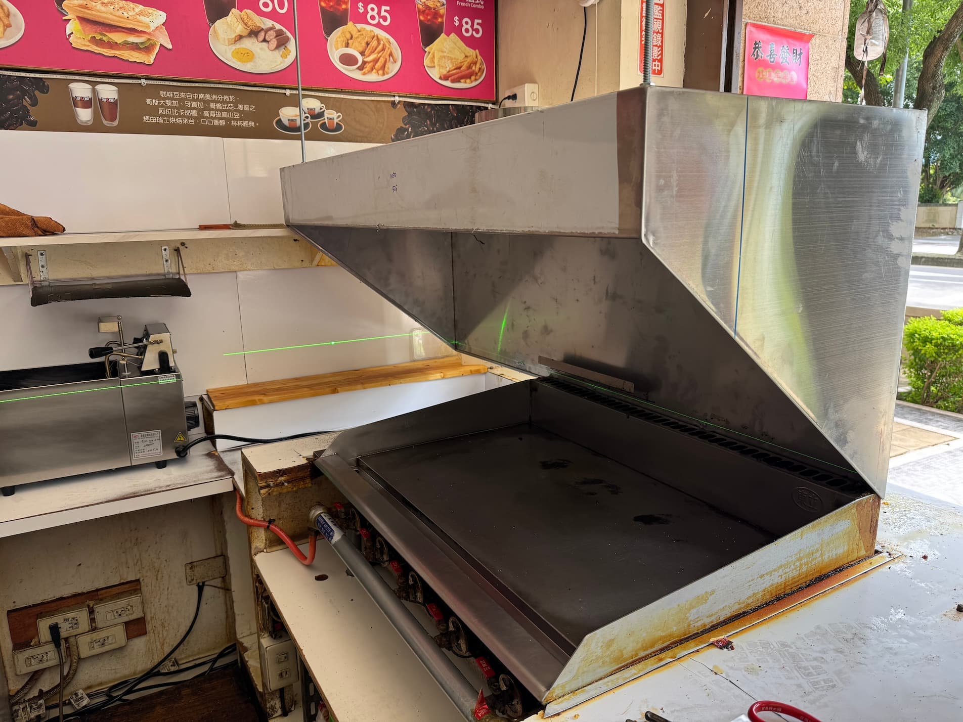 這家早餐店已安裝市售靜電油煙處理機,但仍被旁邊住戶多次投訴油煙味。