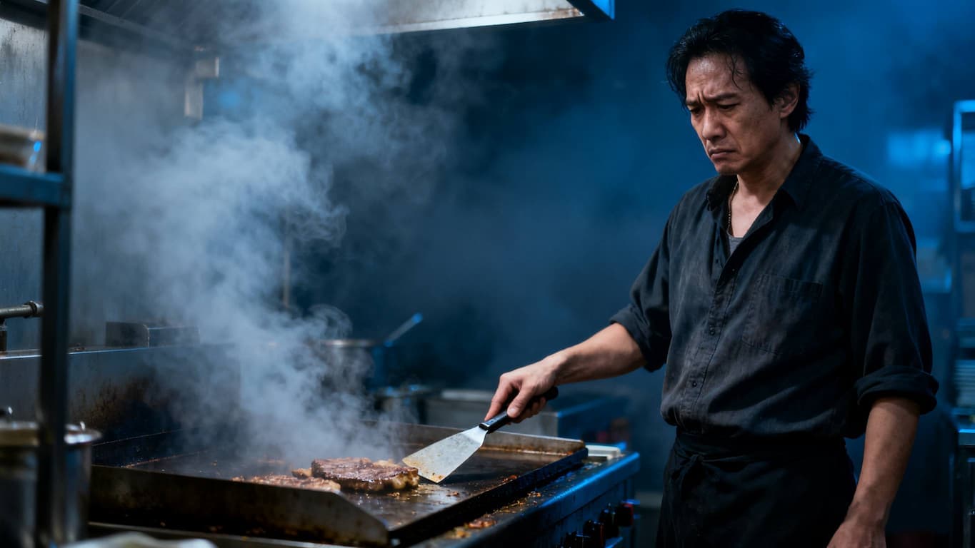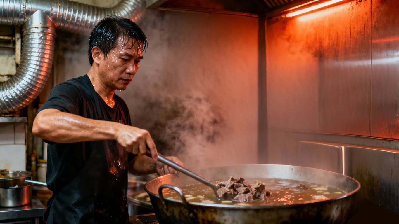 這家牛肉麵店廚房長期高溫,員工常抱怨「煮一碗麵像蒸一次臉」。冷氣和電風扇都開到最大,仍無法改善。