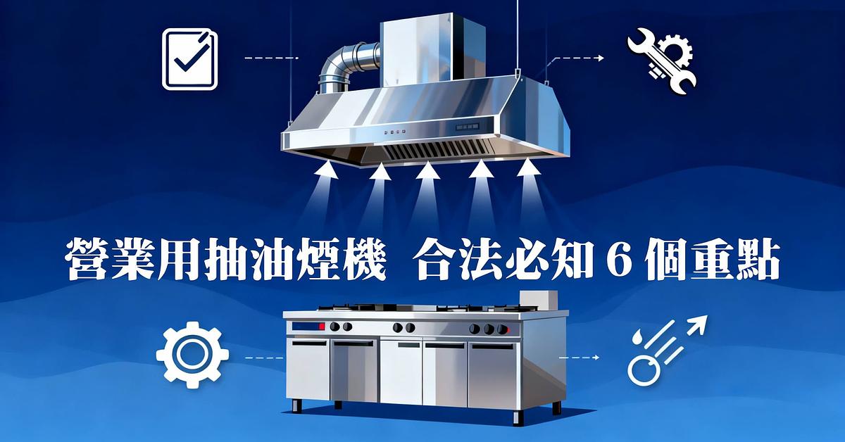 2025 最新 營業用抽油煙機必知重點! 裝營業用抽油煙機就可以了嗎? 想合法營業,究竟需要哪些設備? 本文共整理 6 大重點:法規規範、常見錯誤、全套設備選購建議、保養頻率與案例分享,幫助餐飲業主避免油煙檢舉與罰單,安心合法經營。